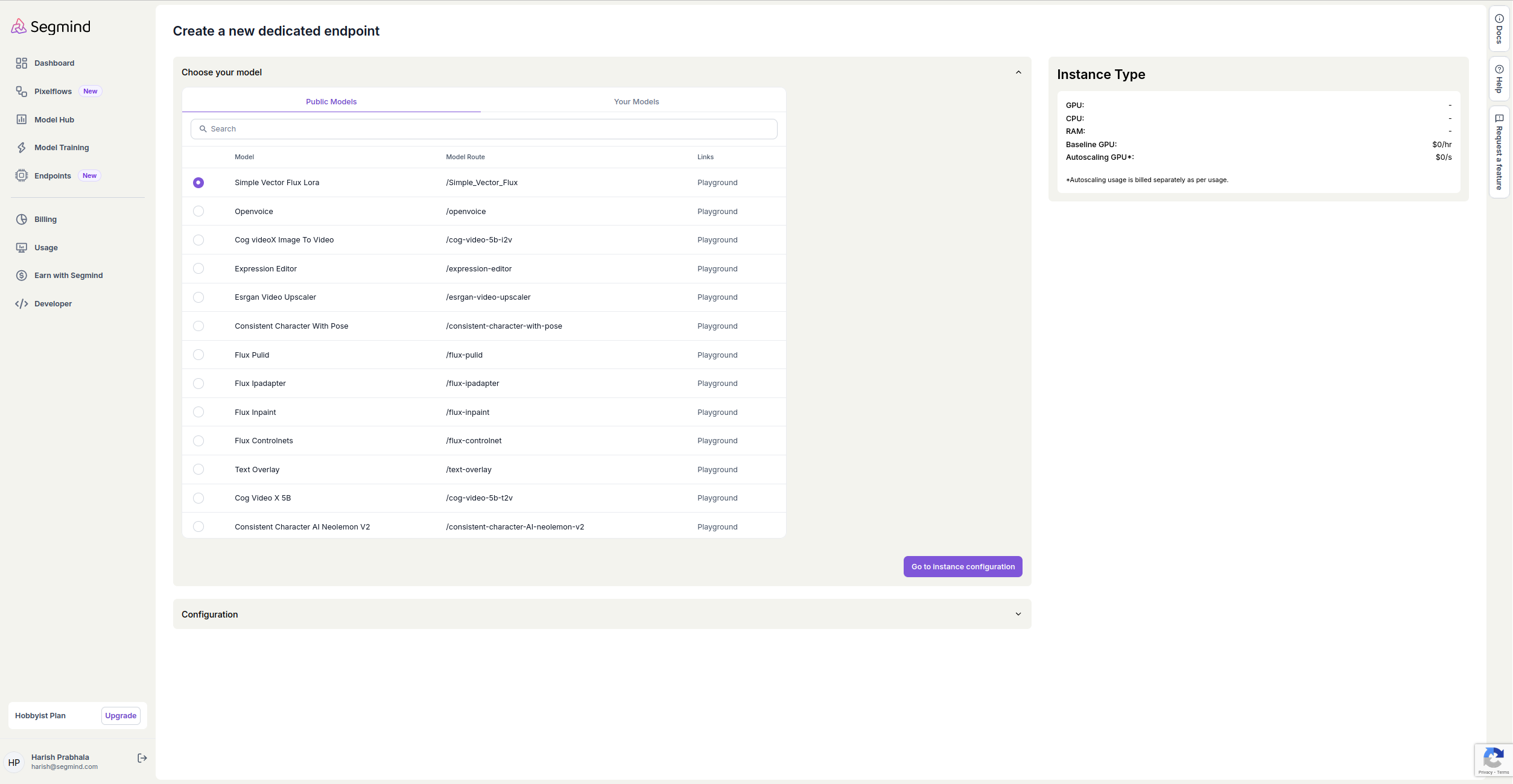 Step 1: Access the Dedicated Endpoint Creation Page